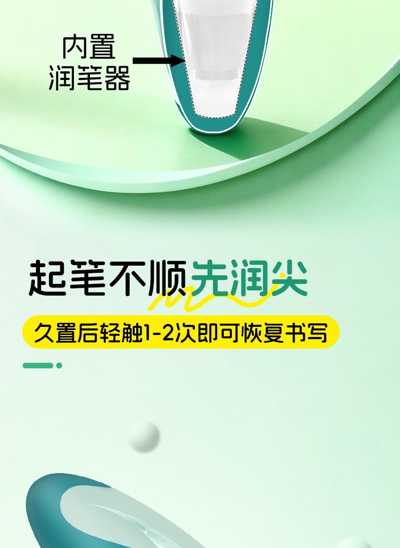 笔帽外侧自带热可擦橡皮,内置润笔器