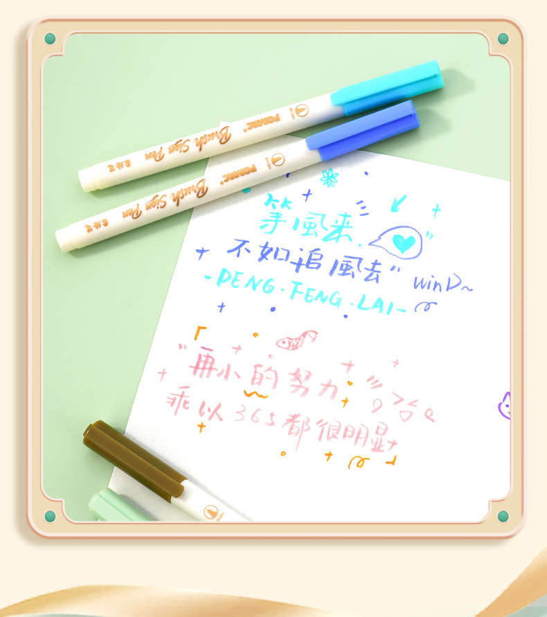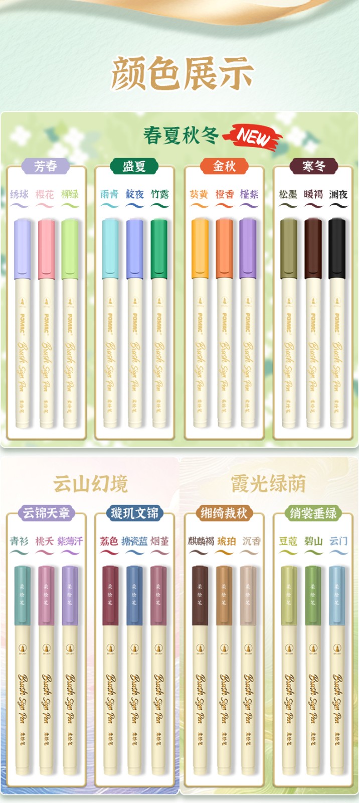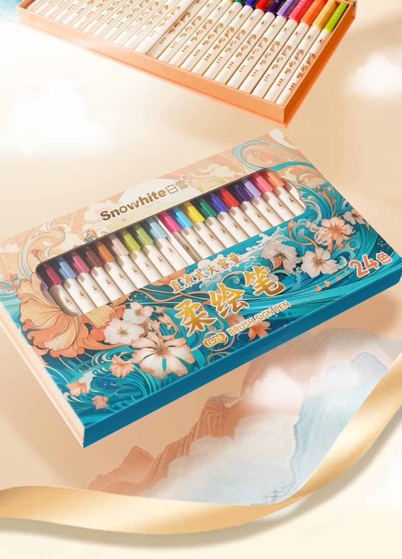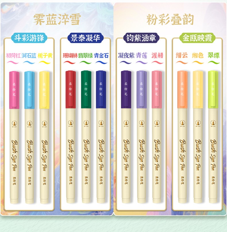 产品型号:BP20墨水颜色:青衫、桃夭、紫薄汗、豆蔻、碧山、云门、麒麟褐、琥珀、沉香、荔色、搪瓷蓝、烟堇、初荷红、涧石蓝、栀子黄、凝夜紫、青莲、渥赭、珊瑚赫、翡翠绿、青金石、缙云、缃色、翠缥、绣球、樱花、柳绿、雨青、靛夜、竹露、葵黄、橙香、槿紫、松墨、暖褐、澜夜笔头规格:弹性软头产品包装:3色/6色/12色/24色