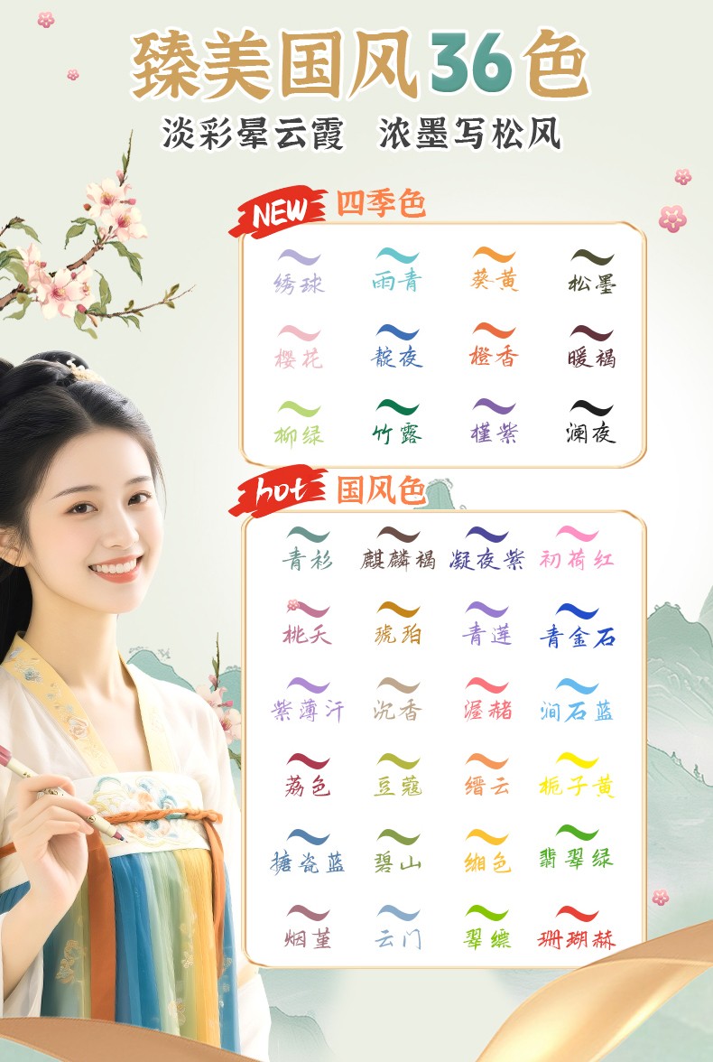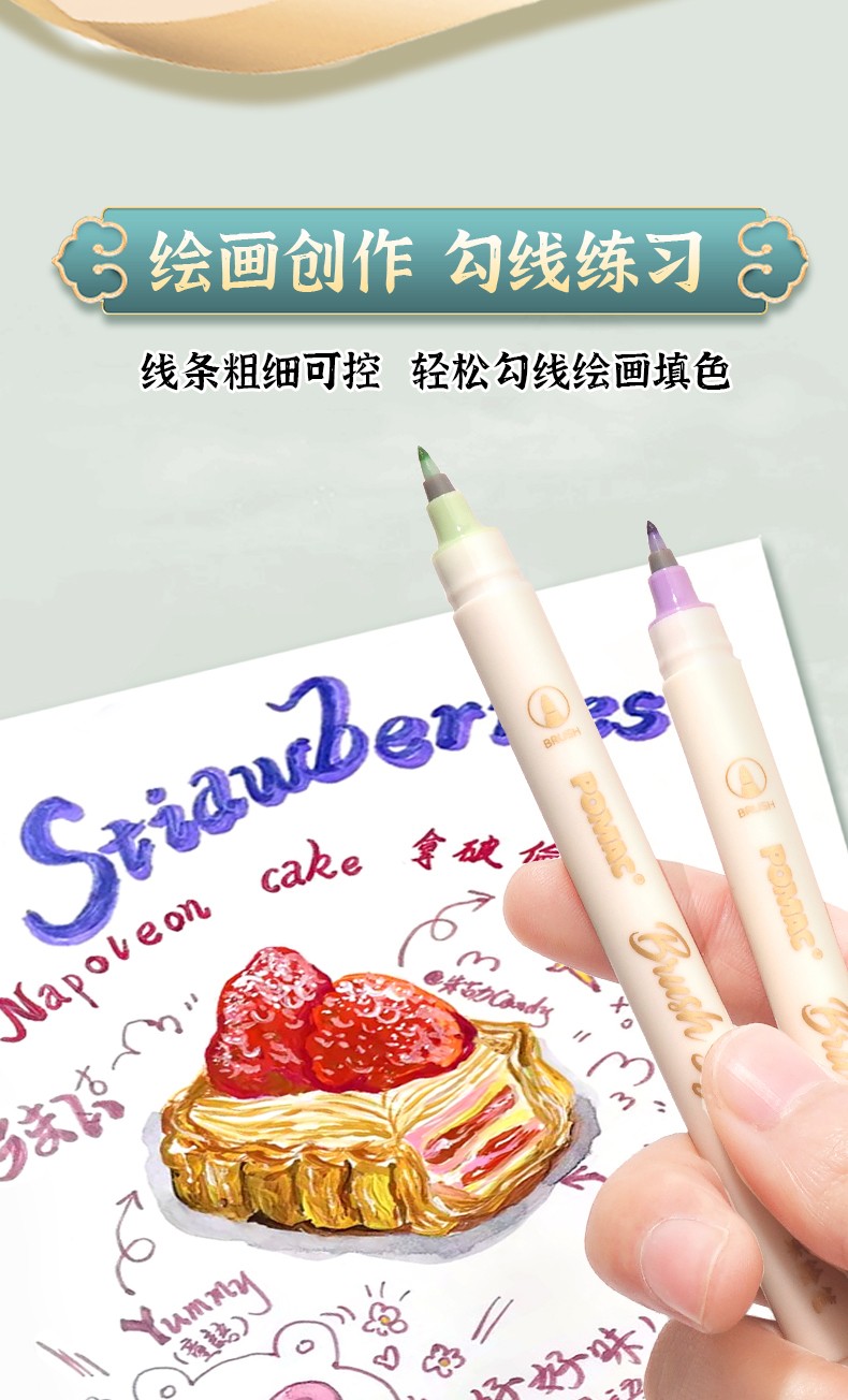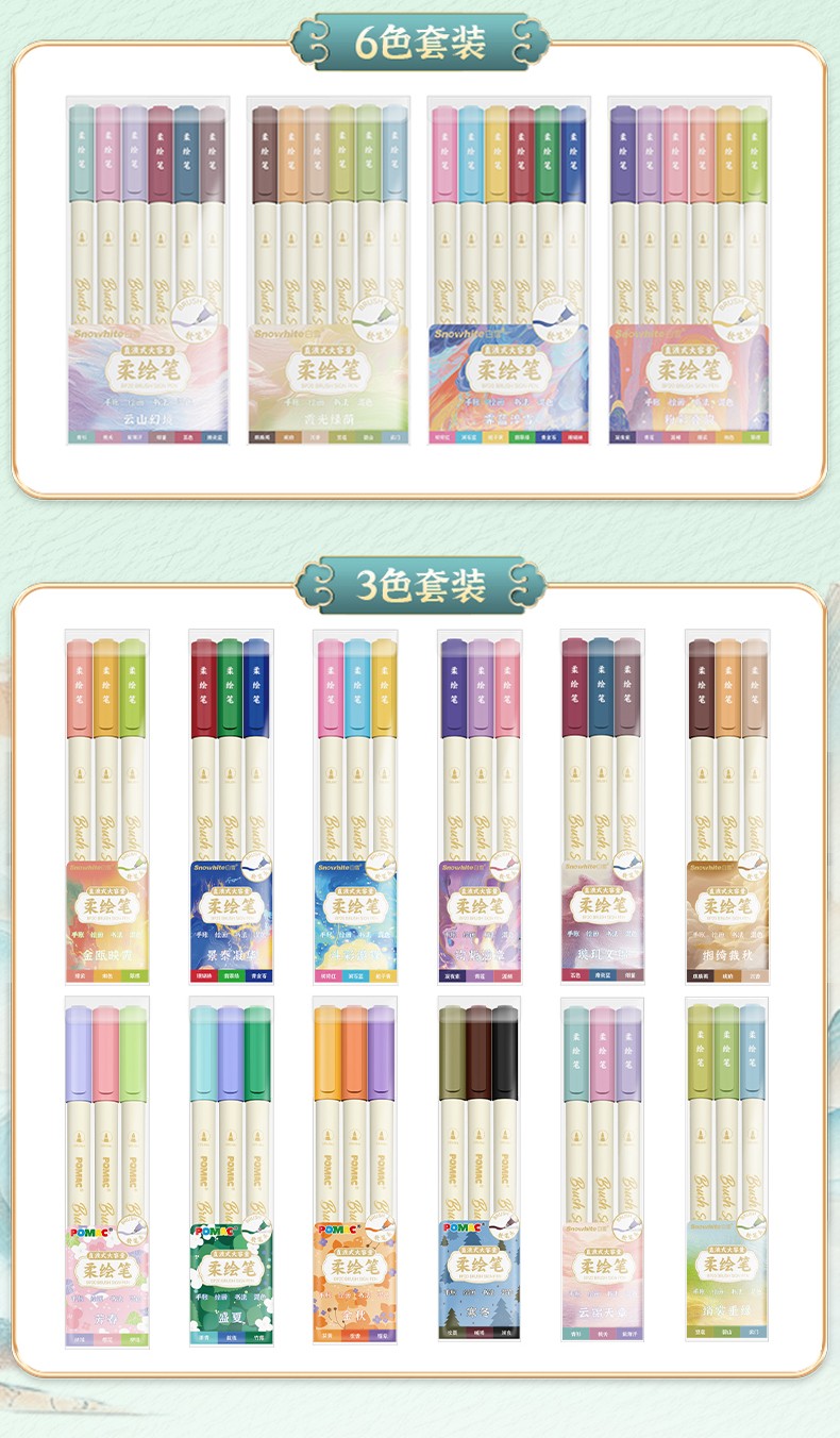 产品型号:BP20墨水颜色:青衫、桃夭、紫薄汗、豆蔻、碧山、云门、麒麟褐、琥珀、沉香、荔色、搪瓷蓝、烟堇、初荷红、涧石蓝、栀子黄、凝夜紫、青莲、渥赭、珊瑚赫、翡翠绿、青金石、缙云、缃色、翠缥、绣球、樱花、柳绿、雨青、靛夜、竹露、葵黄、橙香、槿紫、松墨、暖褐、澜夜笔头规格:弹性软头产品包装:3色/6色/12色/24色