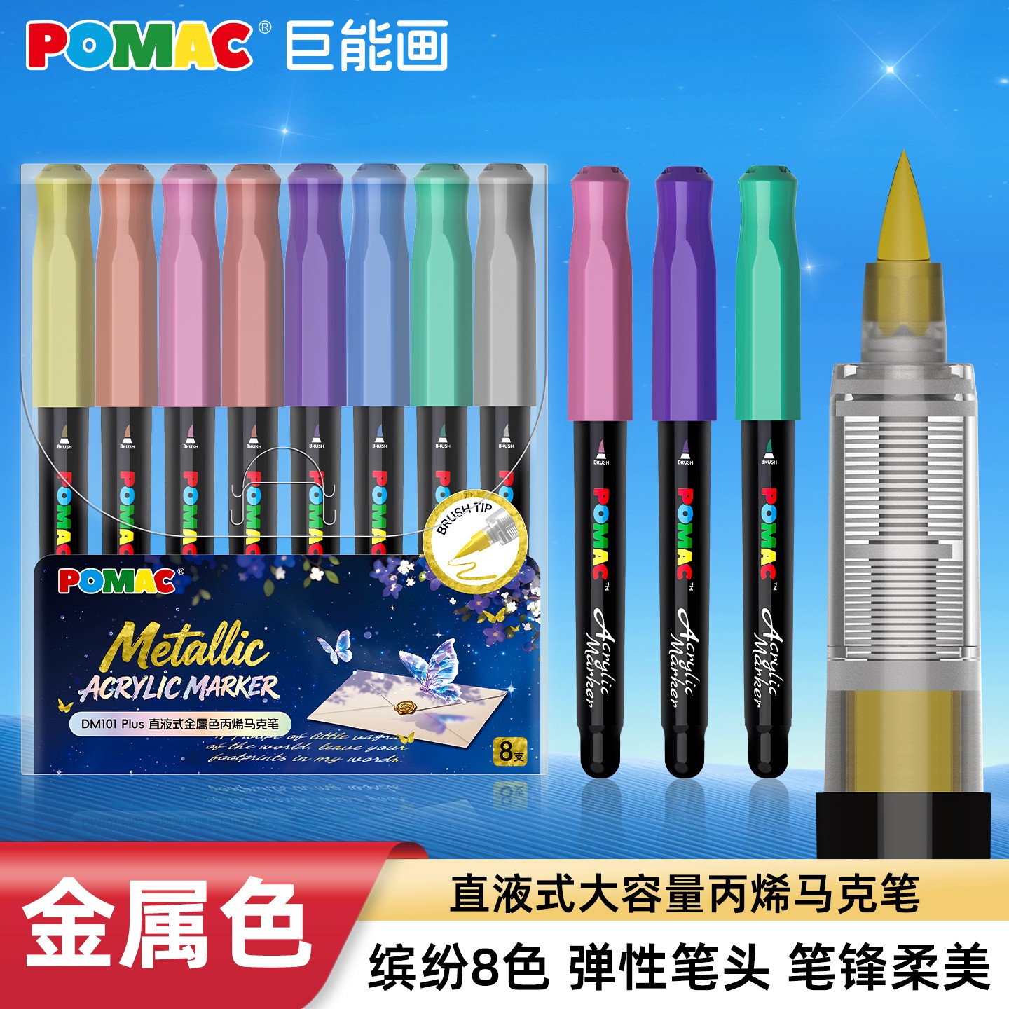 POMAC巨能画直液式丙烯马克笔DM101 plus金属色系