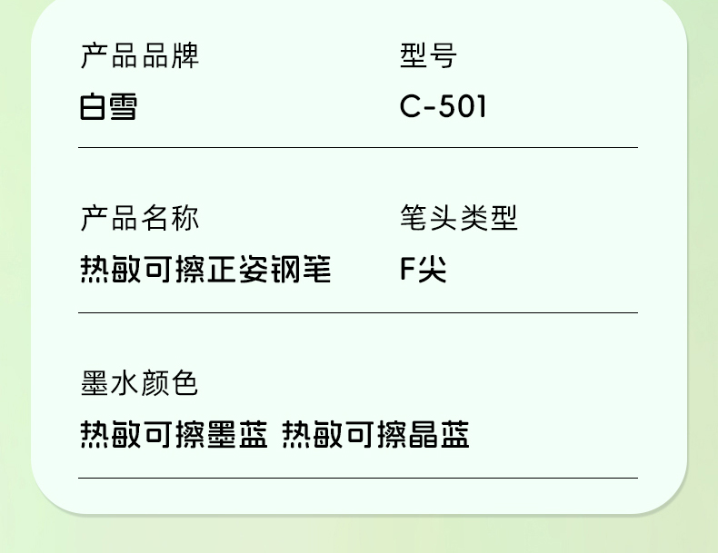 墨水颜色:热可擦墨蓝、热可擦晶蓝