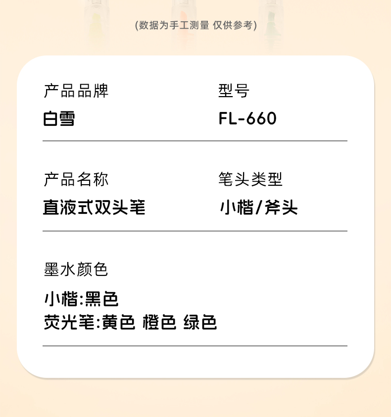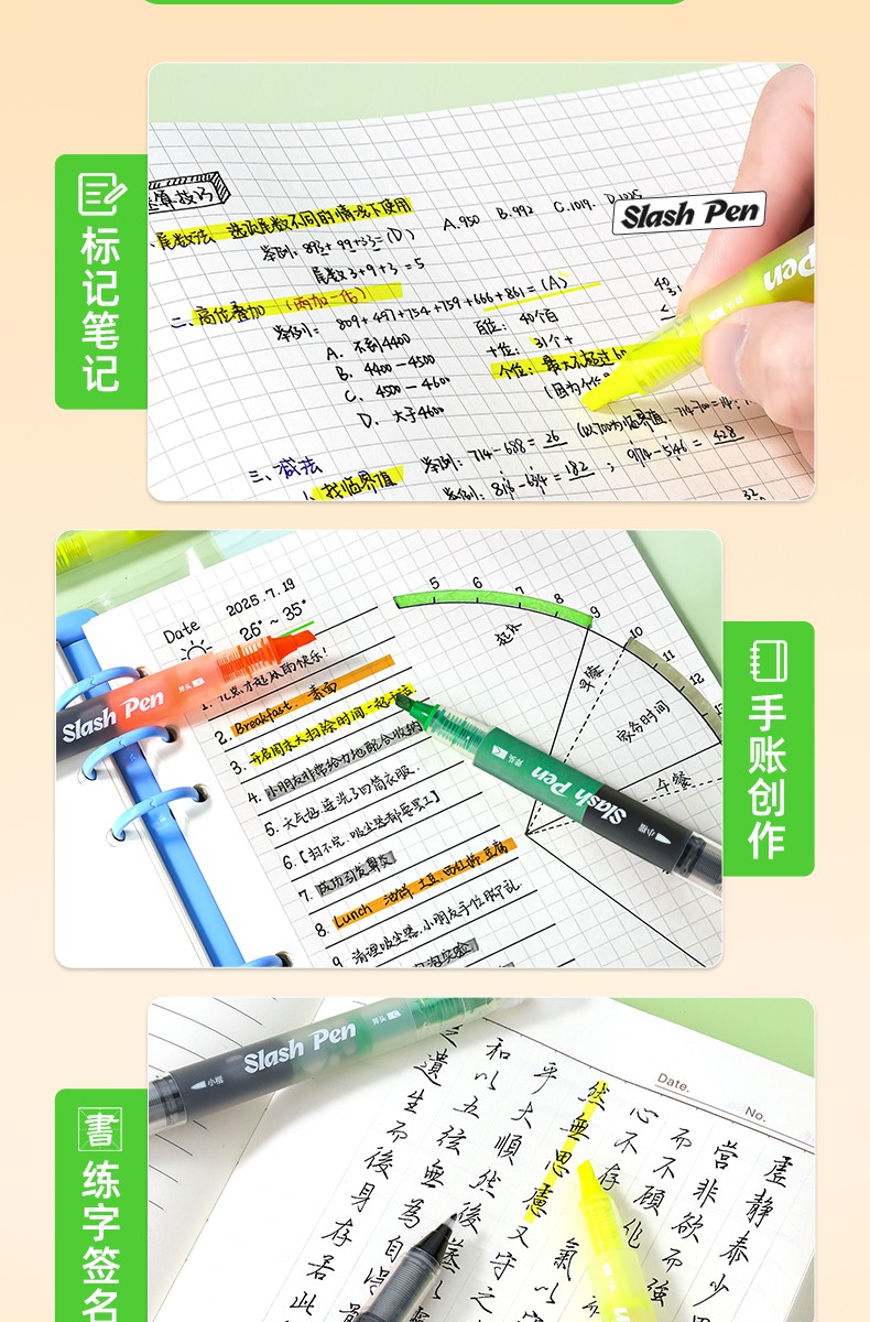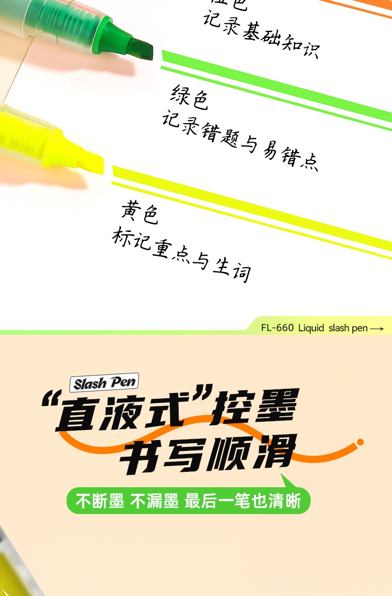 墨水颜色:小楷:黑色/荧光笔:黄色、橙色、绿色
