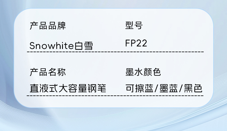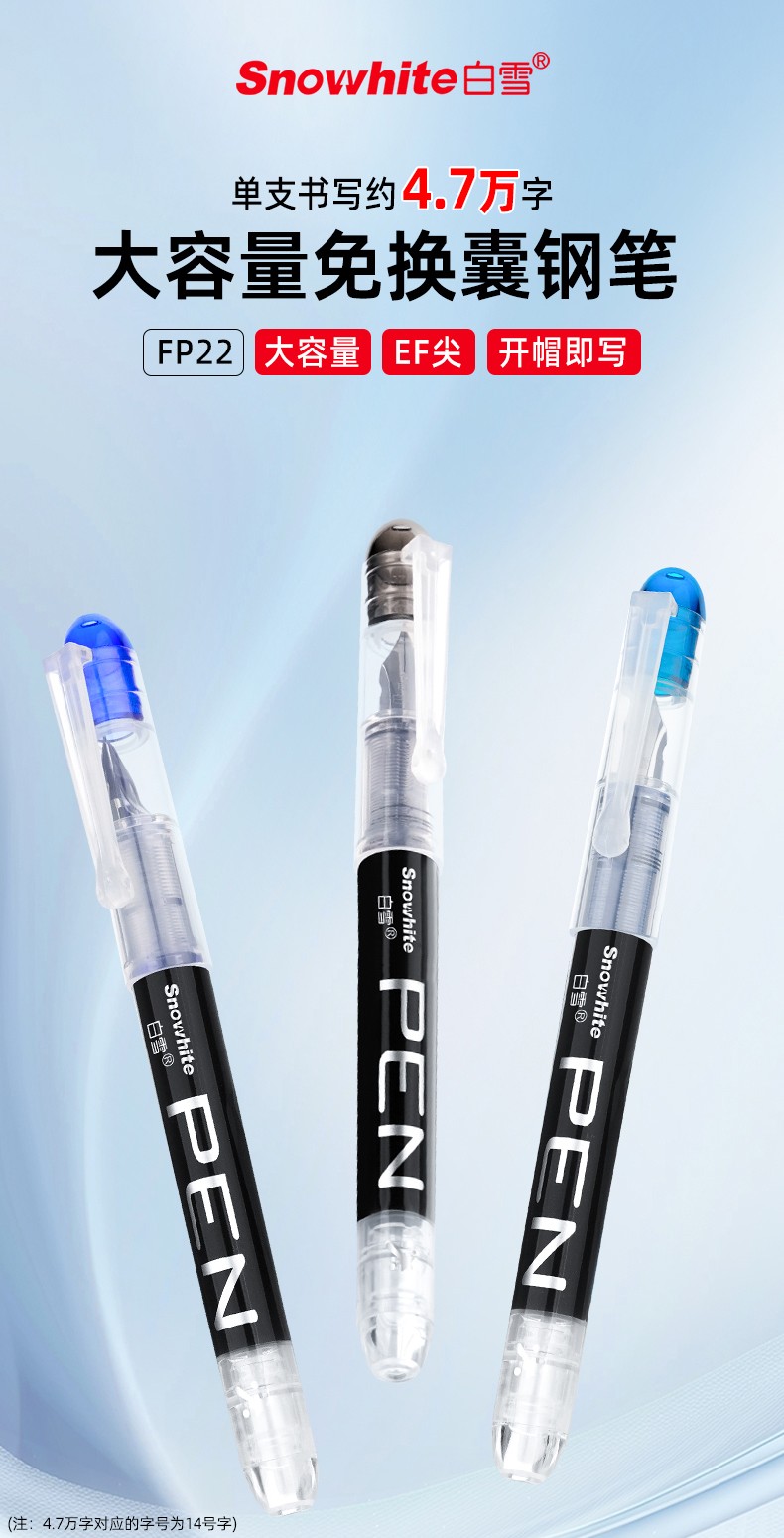 产品型号:FP22墨水颜色:黑、可擦蓝、墨蓝 笔头规格:EF尖产品包装:12支/盒
