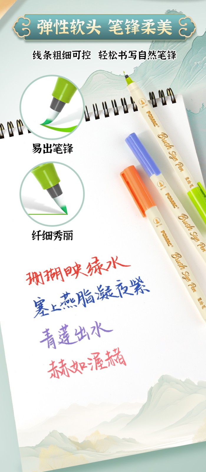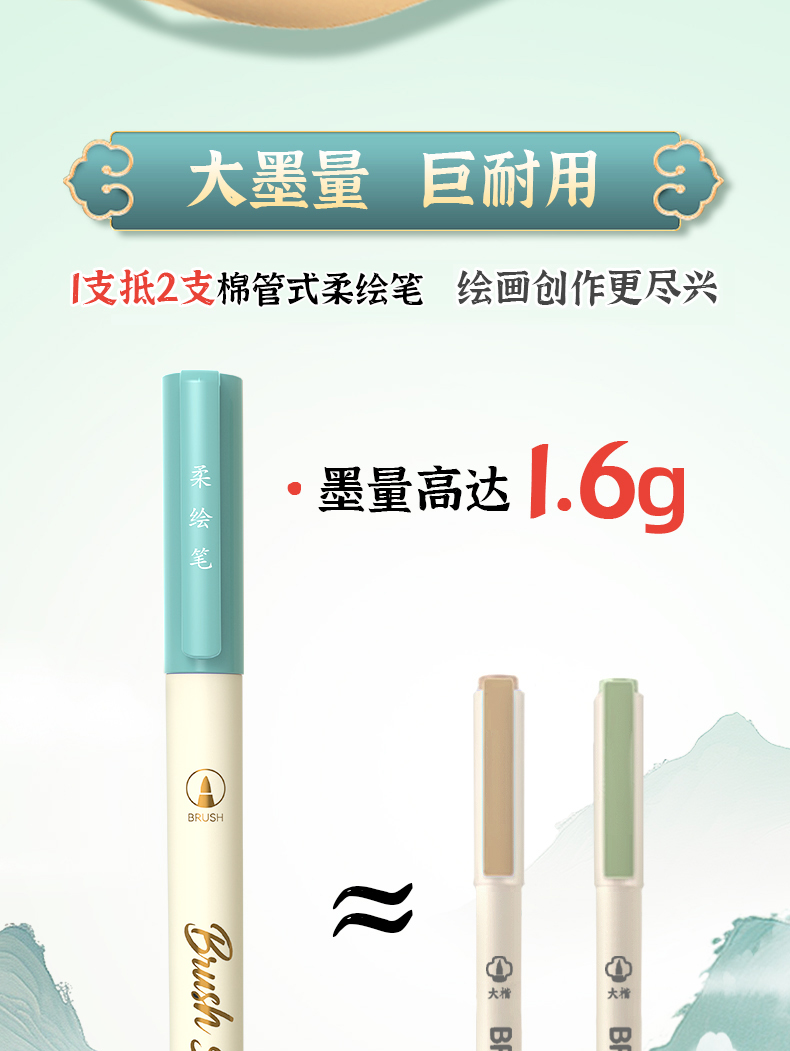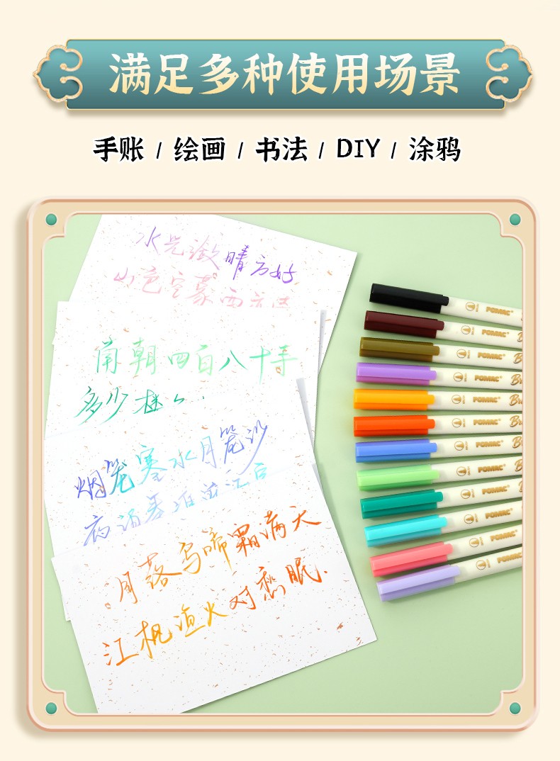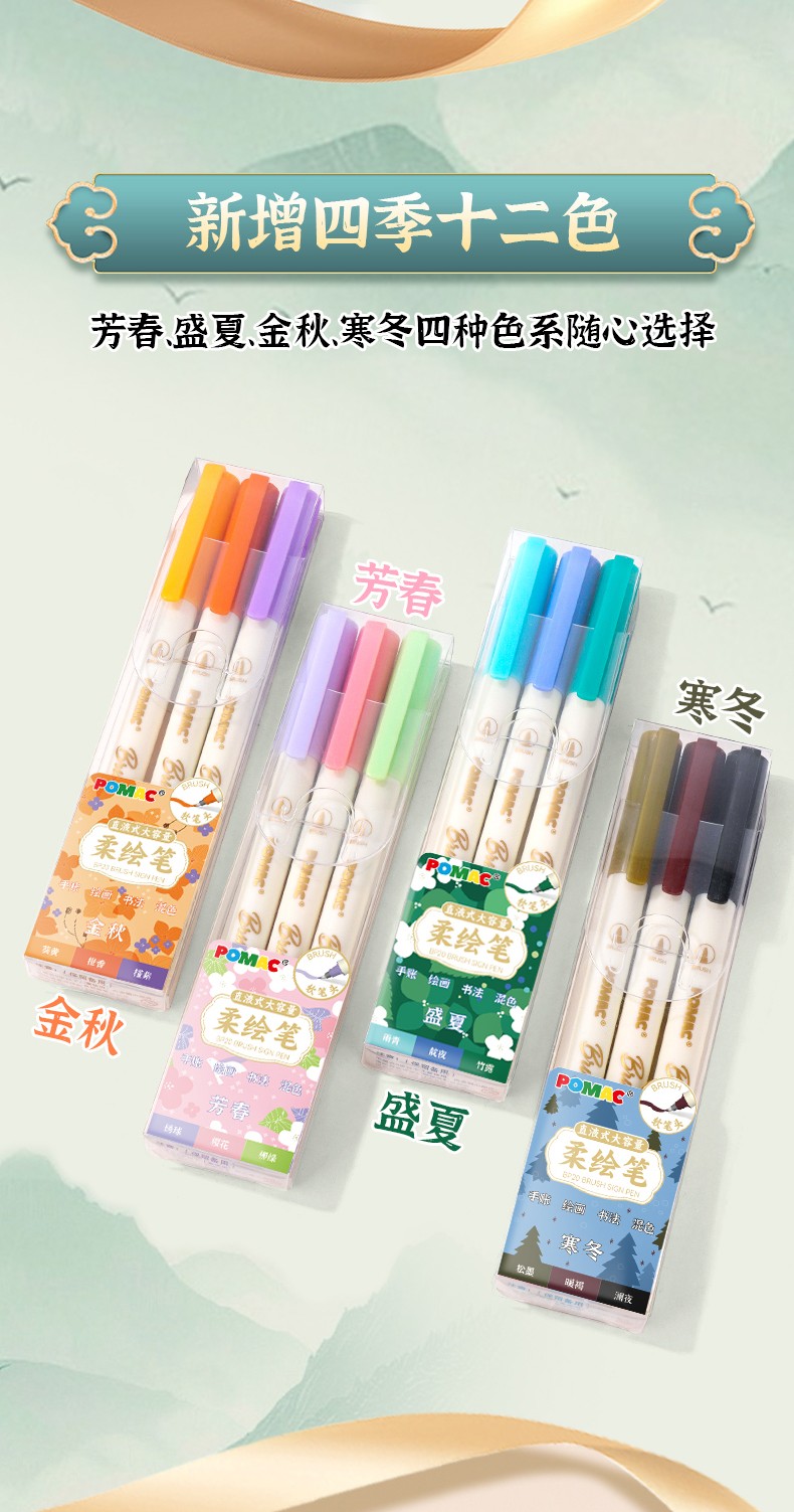 产品型号:BP20墨水颜色:青衫、桃夭、紫薄汗、豆蔻、碧山、云门、麒麟褐、琥珀、沉香、荔色、搪瓷蓝、烟堇、初荷红、涧石蓝、栀子黄、凝夜紫、青莲、渥赭、珊瑚赫、翡翠绿、青金石、缙云、缃色、翠缥、绣球、樱花、柳绿、雨青、靛夜、竹露、葵黄、橙香、槿紫、松墨、暖褐、澜夜笔头规格:弹性软头产品包装:3色/6色/12色/24色